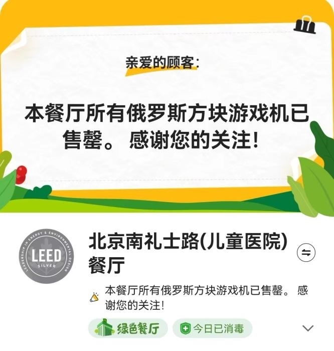 據(jù)麥當(dāng)勞介紹,活動期內(nèi)下單購買任意產(chǎn)品,額外加30元即可獲得俄羅斯方塊游戲機(jī)一個(gè),全國限量40萬個(gè)。但當(dāng)日就有不少人表示,已經(jīng)買不到麥當(dāng)勞游戲機(jī)。記者25日登錄麥當(dāng)勞APP,北京多個(gè)門店亦顯示俄羅斯方塊游戲機(jī)已售罄。