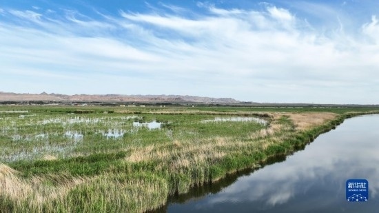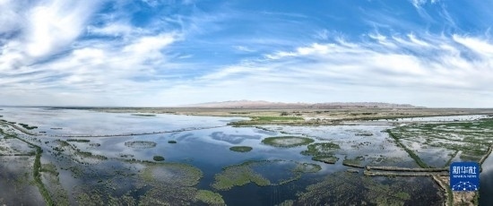這是6月4日拍攝的位于內(nèi)蒙古巴彥淖爾市烏拉特前旗的烏梁素海(無人機(jī)全景照片)。