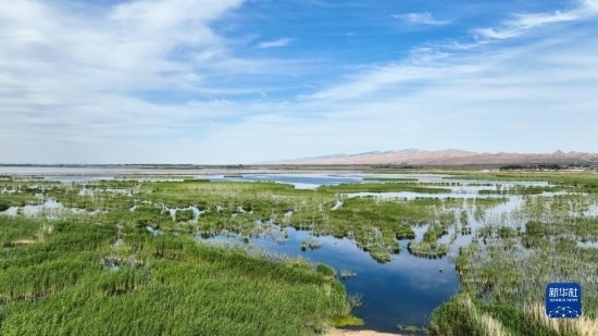 夏日里,位于內(nèi)蒙古巴彥淖爾市烏拉特前旗的烏梁素海波光粼粼,風(fēng)景如畫。