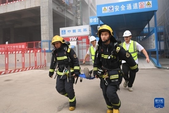 當(dāng)日,浙江省杭州市富陽區(qū)“安全生產(chǎn)月”消防應(yīng)急演練在中建三局富陽銀湖生物信息產(chǎn)業(yè)園項(xiàng)目工地啟動,現(xiàn)場進(jìn)行火災(zāi)撲救、人員施救等環(huán)節(jié)的演練,以提升安全生產(chǎn)應(yīng)急能力。