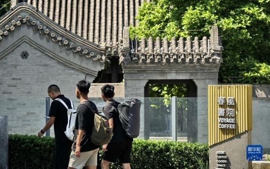 游人路過玉河畔的春風(fēng)書院(6月16日攝)。