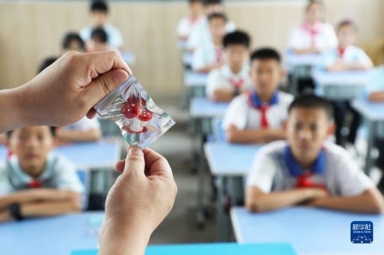 6月25日,在河北省唐山市豐潤(rùn)區(qū)姜家營(yíng)鎮(zhèn)楊家鋪小學(xué),民警為學(xué)生講解毒品危害。