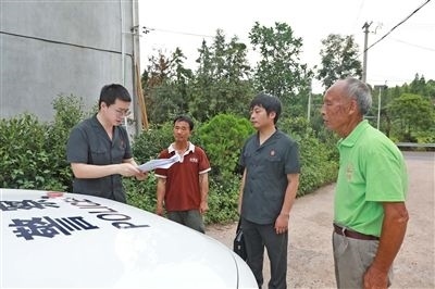 執(zhí)行干警與申請(qǐng)執(zhí)行人確認(rèn)界址。