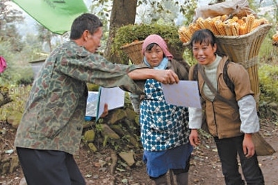 拍攝團(tuán)在紫云縣四大寨鄉(xiāng)牛場村為群眾拍照。崔天云攝