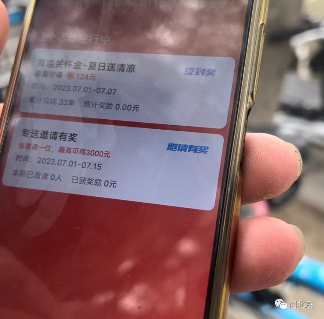 記者點(diǎn)進(jìn)活動(dòng)頁面看到,必達(dá)3天,簽到5天,累計(jì)65單可獎(jiǎng)勵(lì)23元錢,累計(jì)148單可獎(jiǎng)勵(lì)74元錢,最高獎(jiǎng)勵(lì)是累積177單可獎(jiǎng)勵(lì)124元。但是另一名外賣小哥告訴記者,所謂的高溫關(guān)懷金,只是另一種方式的沖單獎(jiǎng)勵(lì)。