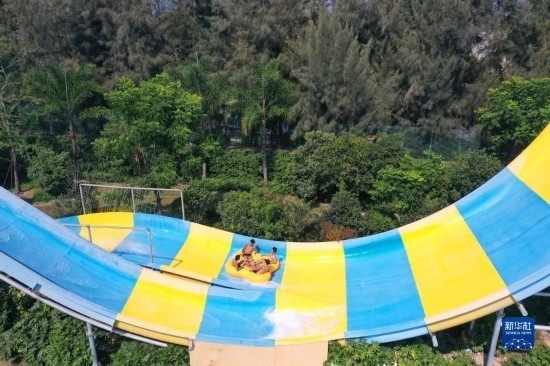 7月8日,游客在安徽省蕪湖市南陵縣大浦鄉(xiāng)村世界的海嘯館戲水游玩。