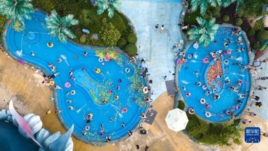 炎炎夏日,人們戲水游玩,樂享清涼。