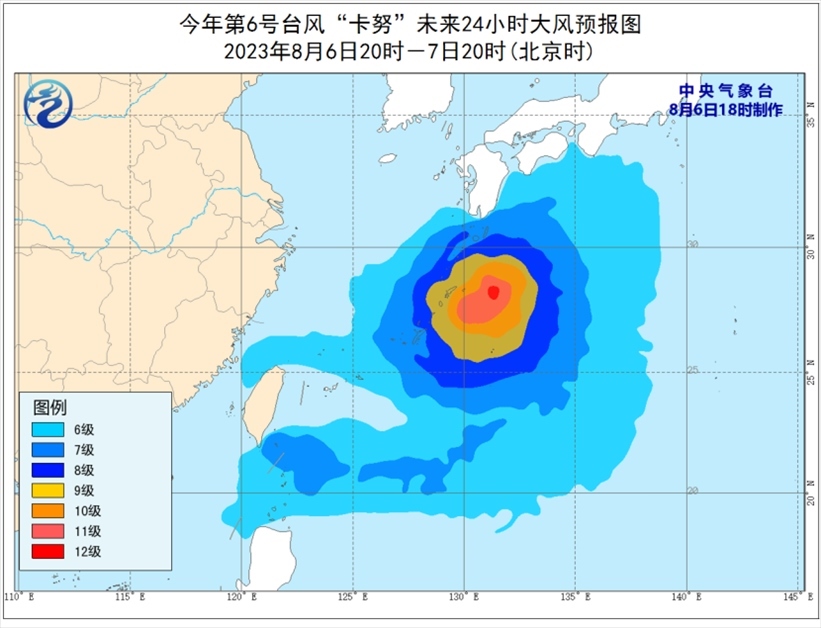 大風(fēng)預(yù)報:8月6日20時至7日20時,巴士海峽、臺灣海峽北部、臺灣以東洋面、東海南部和東部及釣魚島附近海域?qū)⒂?-8級、陣風(fēng)9-10級的大風(fēng),其中東海東部部分海域風(fēng)力可達(dá)9-10級,陣風(fēng)11-12級。