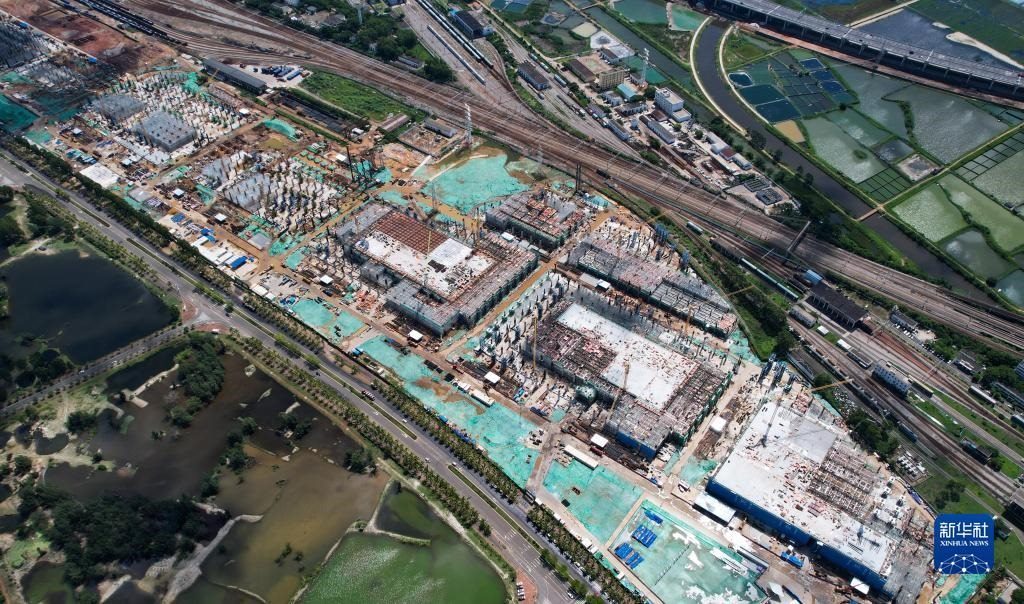 ??谛潞8酆湍细邸岸€口岸”(貨運(yùn))集中查驗(yàn)場(chǎng)所建設(shè)項(xiàng)目(7月21日攝,無人機(jī)照片)。