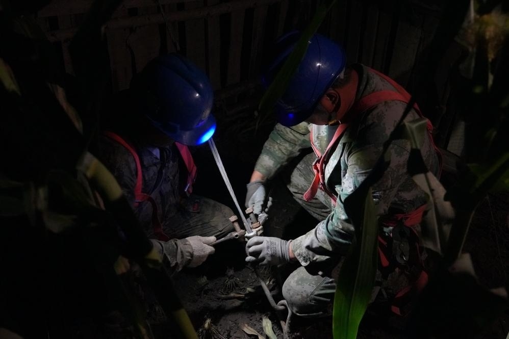國(guó)網(wǎng)牡丹江供電公司電力搶修人員連夜進(jìn)行搶修。(受訪(fǎng)者供圖)