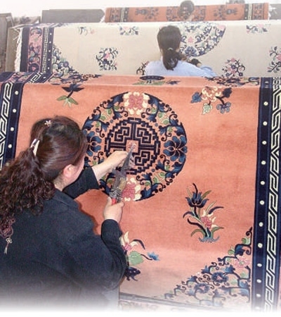 鹽池縣一家地毯生產(chǎn)企業(yè)的工人在制作羊毛地毯。鹽池縣委宣傳部提供