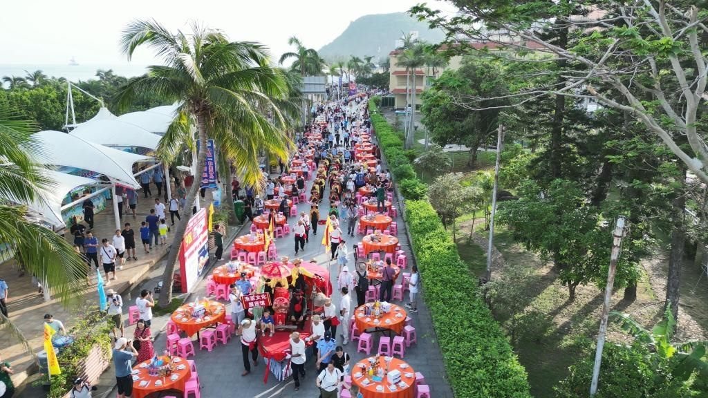上千桌宴席沿街擺開,來自五湖四海的游客和當?shù)貪O民們歡聚一堂,沐浴著星光與海風,從五柳紅古魚,到海膽海鮮飯,一道道漁家美食端上餐桌,讓食客品嘗舌尖美味,感受來自海陵島的獨特風味。