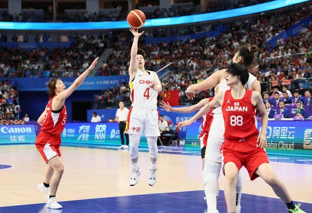 決賽開場,兩隊球員都略顯緊張,中國隊幾次中投失手,日本隊數(shù)次快攻也未能建功。依靠韓旭在內線的牽制,黃思靜連續(xù)命中2記遠投,李夢突破打成“2+1”,中國隊打出17:7的開局。面對身材更高大的中國姑娘,日本球員通過不斷突破傳球創(chuàng)造得分機會。首節(jié),中國隊26:16領先對手。