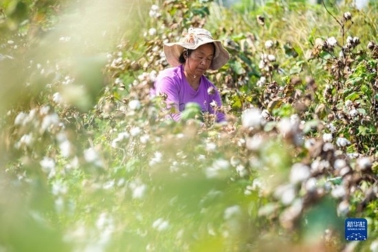 金秋十月,湖南省益陽市南縣種植的4萬余畝棉花相繼進(jìn)入采收季,當(dāng)?shù)孛揶r(nóng)趁著晴好天氣采摘棉花,田間地頭一片忙碌的景象。