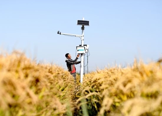10月15日,樂亭縣數(shù)字循環(huán)現(xiàn)代農(nóng)業(yè)園區(qū)內(nèi),工作人員在調(diào)試監(jiān)測設(shè)備。(受訪單位供圖)