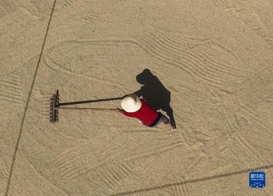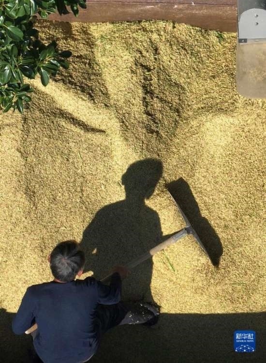入秋以來(lái),湖南各地晚稻陸續(xù)成熟,農(nóng)民抓住好天氣搶收晾曬。