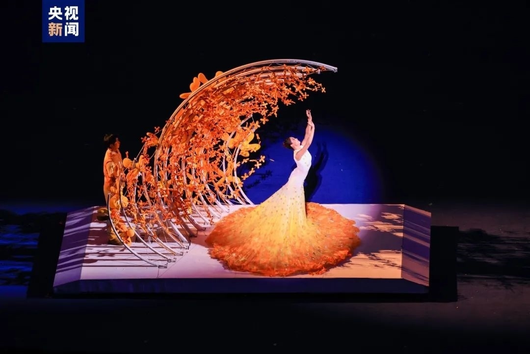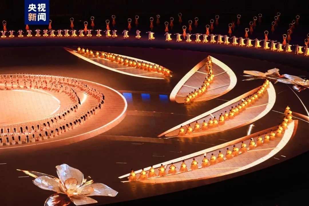 今晚的“大蓮花”,處處見(jiàn)桂花,時(shí)時(shí)聞得到桂花香。一朵“金桂之花”到22組金桂花團(tuán),從分散到匯聚,時(shí)而形成流水,時(shí)而形成拱橋,最終將在空中形成巨大的“金桂花冠”,向每一位運(yùn)動(dòng)員傳遞“逐夢(mèng)折桂”的美好寓意。