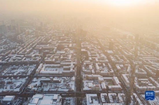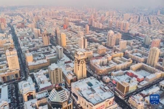 這是11月9日拍攝的哈爾濱主城區(qū)雪景(無人機(jī)照片)。
