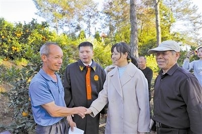 正值果園采摘農(nóng)忙時(shí)期,為保證群眾訴訟和農(nóng)忙“兩不誤”,近日,江西省寧都縣人民法院石上人民法庭在當(dāng)事人的臍橙園里,就一起民間借貸糾紛案進(jìn)行巡回審判。