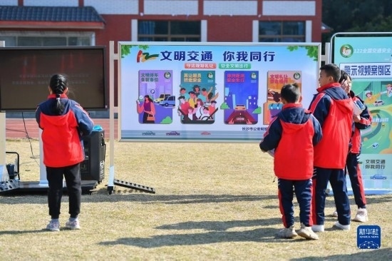 12月1日,在長(zhǎng)沙市望城區(qū)新河學(xué)校,學(xué)生和家長(zhǎng)參加交通標(biāo)識(shí)競(jìng)答活動(dòng)。