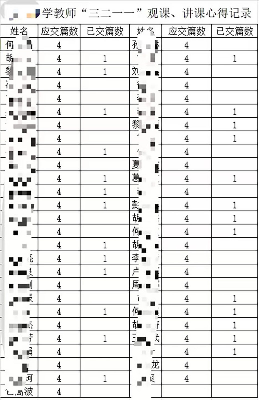 作為班主任,她承擔(dān)管理班級(jí)的責(zé)任,學(xué)校為了“看見”管理內(nèi)容,會(huì)安排教師們填寫各種各樣的表格,包括每日缺勤記錄表,每日、每周、每月、每學(xué)期的安全記錄表,班主任工作手冊,行為規(guī)范課堂記錄表,家訪表,家長會(huì)座談表等。表格一多,何雪夕免不了“造假”。