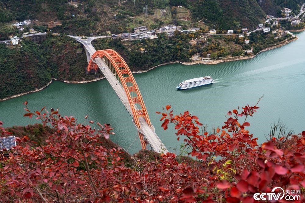 初冬時(shí)節(jié),長江三峽重慶市巫山縣水域兩岸色彩斑斕,紅葉正艷,美如畫卷。