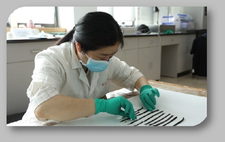 記者了解到,目前這批出土戰(zhàn)國楚簡已在荊州文物保護(hù)中心完成第一階段室內(nèi)揭取與保護(hù)工作,紅外掃描、釋文、綴合等工作同步展開。經(jīng)歷20多個(gè)保護(hù)修復(fù)步驟之后,近乎朽腐的竹簡漸漸恢復(fù)本貌,字跡逐一清晰再現(xiàn)。