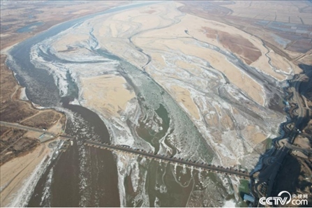 2023年12月24日,山西運(yùn)城,黃河臨猗段出現(xiàn)流凌,吳王古渡拆除浮橋,流凌從缺口處緩緩?fù)ㄟ^。