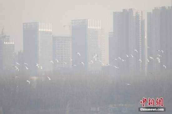 1月11日,河南三門峽,來自蒙古國和西伯利亞的數(shù)千只大天鵝前來越冬。如今,當(dāng)?shù)貞{借適宜的氣候和優(yōu)良的生態(tài)環(huán)境,成為中國境內(nèi)大天鵝棲息越冬的主要目的地之一。圖為一群天鵝飛過三門峽城市上空。