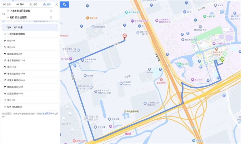 “途經(jīng)滬青平公路時,平臺也愛規(guī)劃逆行路線。”陳陽陽提供的第3條逆行路線正屬于這一情況。這是從京華路187弄送往南山雨果小區(qū)的一單,平臺規(guī)劃的路線中,指示騎手從明珠路右拐進入滬青平公路向西騎行至葉聯(lián)路再向南。可是,滬青平公路在葉聯(lián)路路口處沒有過街橫道線,此時,平臺索性規(guī)劃騎手沿著滬青平公路南側(cè)逆向騎行。1月8日,記者實地走了一遍這段路線:若騎手沿著滬青平公路北側(cè)騎行,需一直向西騎到徐盈路才能過街,再沿著滬青平公路南側(cè)向東抵達(dá)葉聯(lián)路。手機顯示,繞行路線比美團平臺規(guī)劃路線遠(yuǎn)了1.2公里。