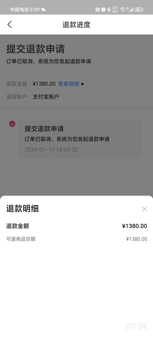 17日下午終于退款成功(黃女士供圖)