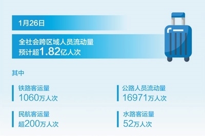 1月26日,2024年春運(yùn)大幕拉開。當(dāng)日全社會(huì)跨區(qū)域人員流動(dòng)量預(yù)計(jì)超1.82億人次,其中全國(guó)鐵路預(yù)計(jì)發(fā)送旅客1060萬人次,公路16971萬人次,民航超200萬人次,水路52萬人次?!拌F路空水”密切合作,智能技術(shù)廣泛應(yīng)用,旅途服務(wù)貼心溫馨……各方協(xié)同,保障旅客安全順暢出行。