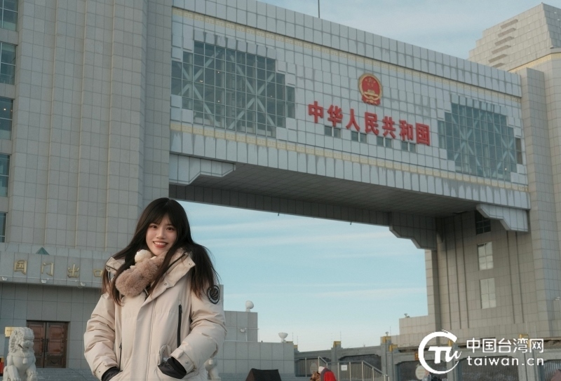 1月27日,2024年全國臺聯(lián)第三十屆臺胞青年冬令營內(nèi)蒙古分營一行人前往中俄第五代國門參訪,陳紀(jì)陵于中俄第五代國門前“打卡”留念。(臺灣同學(xué) 王奕勛 攝)