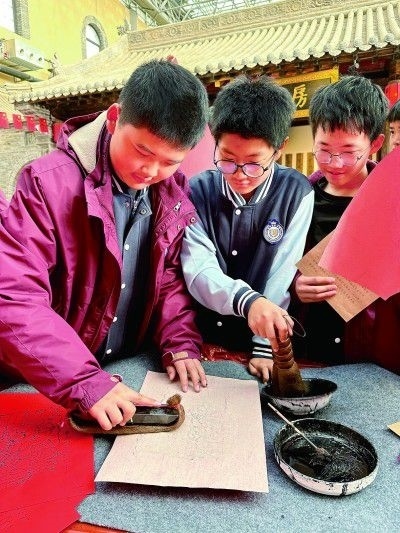 學生體驗年畫印制。牛洪亮攝