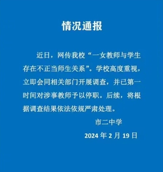 ·上海一高中女教師被舉報出軌16歲學(xué)生,校方通報:涉事教師停職。