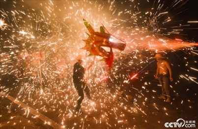 2024年2月18日,貴州省銅仁市松桃苗族自治縣孟溪鎮(zhèn)寨桿村舉行一年一度的“炸龍”鬧新春活動?!罢垺笔钱?dāng)?shù)卮汗?jié)期間的一種傳統(tǒng)習(xí)俗文化,是人們祈求平安、富裕、健康的一種方式。