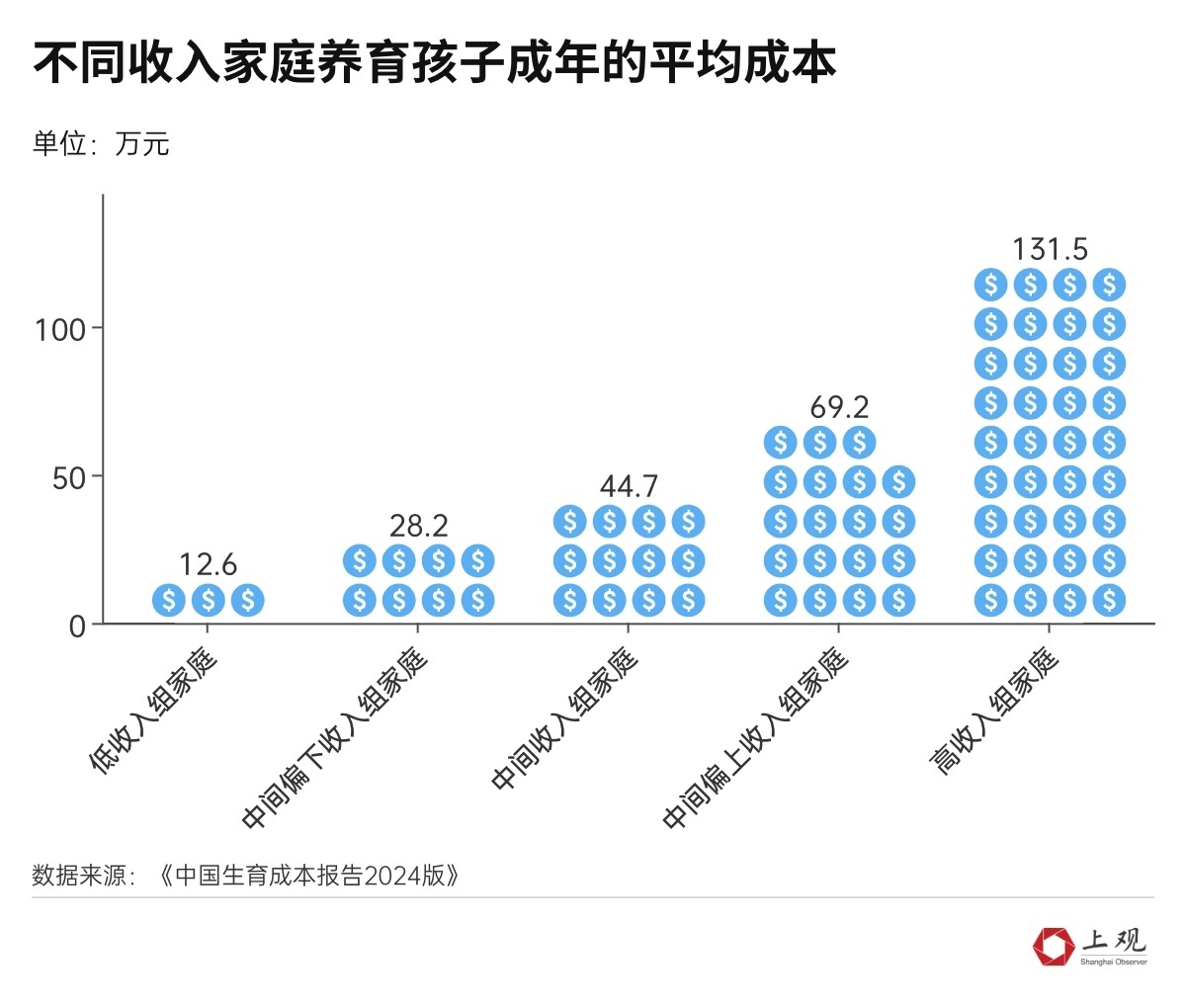 這其中尤其是生育的成本之高,讓年輕人望而生退。根據(jù)近期發(fā)布的《中國(guó)生育成本報(bào)告2024版》,養(yǎng)育一個(gè)孩子至18歲成年的成本約為53.8萬元,若養(yǎng)到大學(xué)畢業(yè),平均成本在68萬元左右。