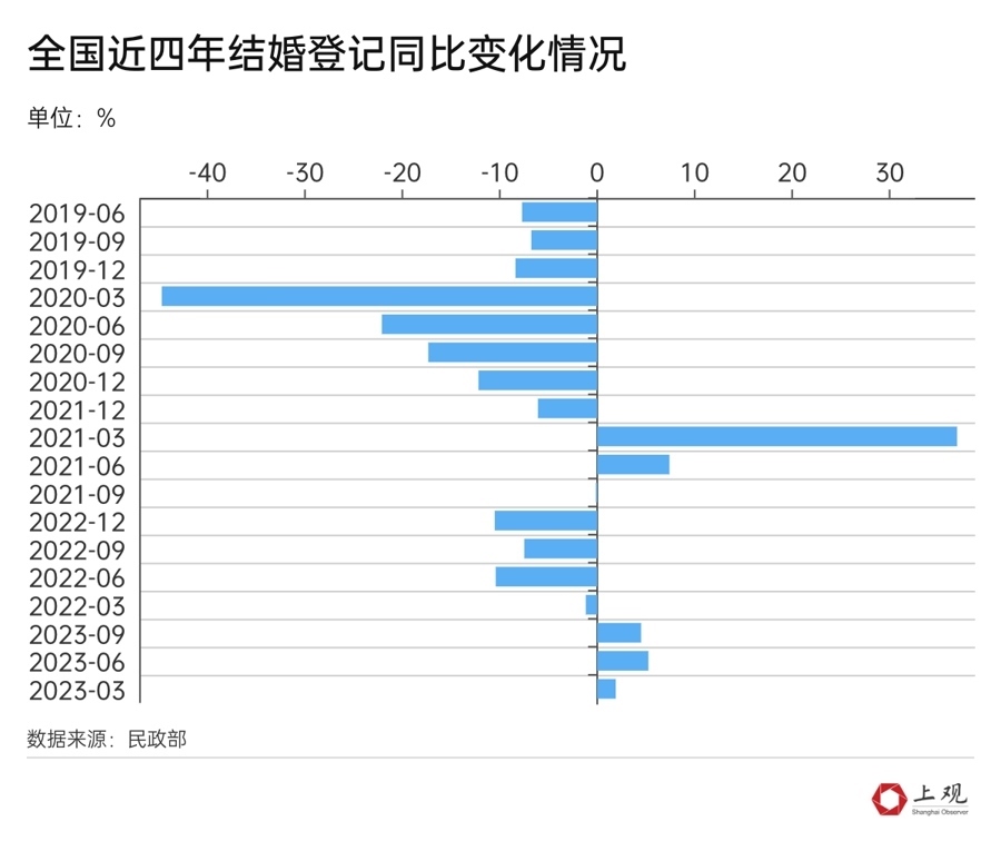 造成2023年成為“結(jié)婚大年”的主要原因,還是疫情的因素。
