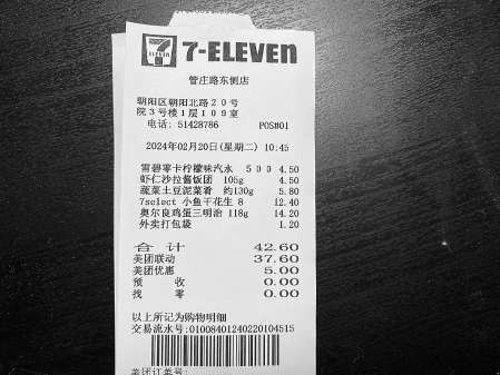 上周,市民李先生通過外賣平臺在711便利店管莊路東側(cè)店下單了5件商品。收到外賣后,李先生發(fā)現(xiàn),商品包裝上的價格與自己下單時的價格不一致?!皧W爾良雞蛋三明治14.2元,而包裝上標注的是13.5元,多收了7毛。”李先生說。
