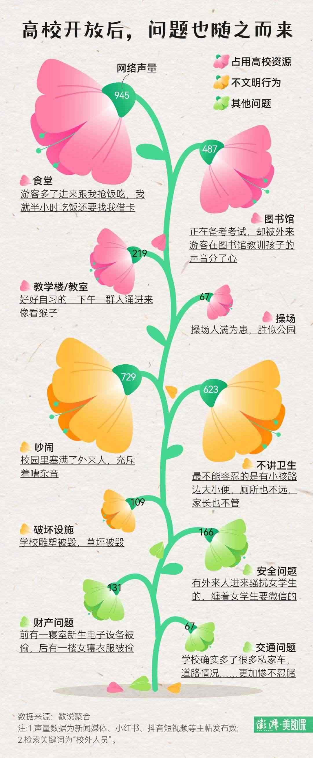 在今年 3 月 中旬,游客和學(xué)生發(fā)生沖突后,武漢大學(xué)官方發(fā)布聲明,表示將嚴(yán)厲打擊外來人員(車輛)違規(guī)入校的情況。中國礦業(yè)大學(xué)也對學(xué)生反映的部分訪客不文明行為給予回應(yīng),將拒不配合校園管理的校外人士列入管控名單,并取消其入校資格。