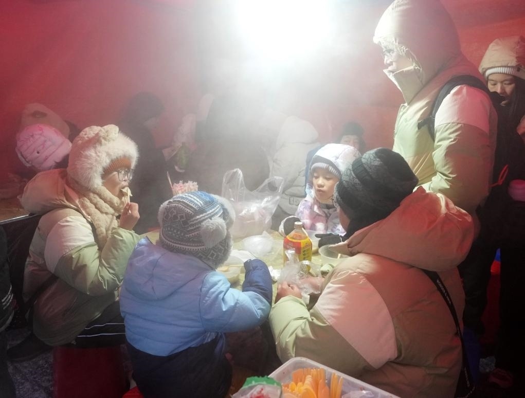 2024年1月,在哈爾濱紅專街早市,來(lái)自廣州的游客在品嘗粘豆包(1月22日攝)。 新華社記者 王毓國(guó) 攝