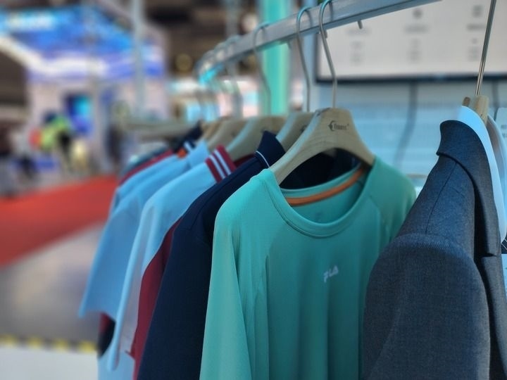 2023年6月13日拍攝的首屆上海國際碳博會上凱賽生物展示的生物基聚酰胺纖維產(chǎn)品制成的服飾。新華社記者 王默玲 攝