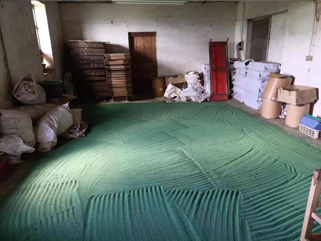 地上綠色物品是廣西靈山縣某偽劣獸藥生產廠家生產的偽劣獸藥。(枝江市公安局供圖)