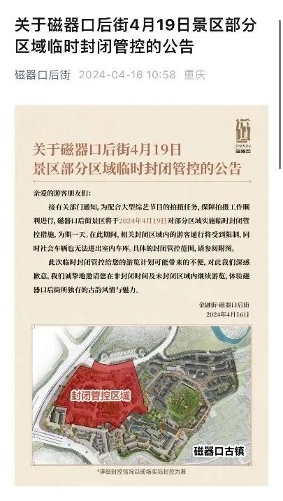 磁器口后街景區(qū)臨時(shí)封閉公告