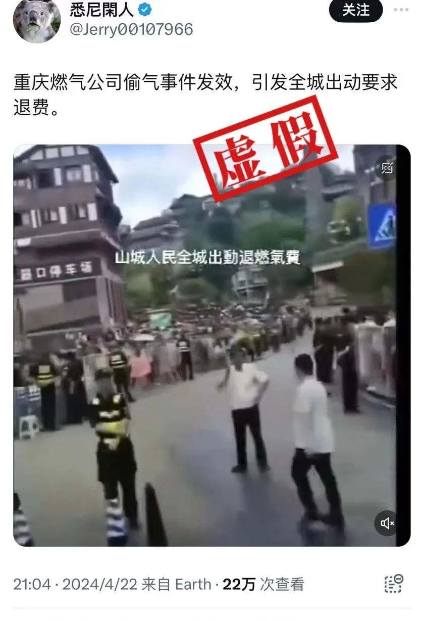 近期,海外社交平臺有網(wǎng)友上傳一則視頻并聲稱畫面為“重慶全城出動要求退燃?xì)赓M(fèi)”,然而該視頻存在諸多疑點(diǎn),似乎并非網(wǎng)傳所述場景。