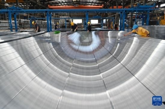 5月1日,位于河南省沁陽(yáng)市的廣東興發(fā)鋁業(yè)(河南)有限公司擠壓車間,工人在生產(chǎn)線上工作。