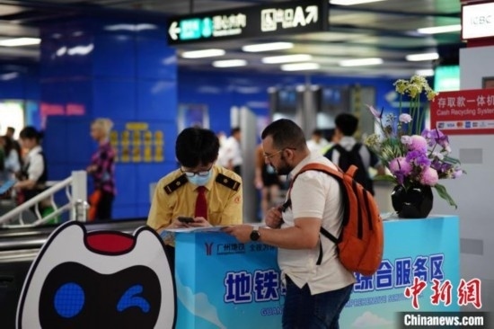 廣交會(huì)期間,廣州地鐵提供更便捷、多元化的出行保障,包括設(shè)置“綜合服務(wù)區(qū)”,提供現(xiàn)場(chǎng)咨詢(xún)、外語(yǔ)翻譯、票務(wù)導(dǎo)購(gòu)等多元服務(wù)。廣州地鐵集團(tuán)供圖