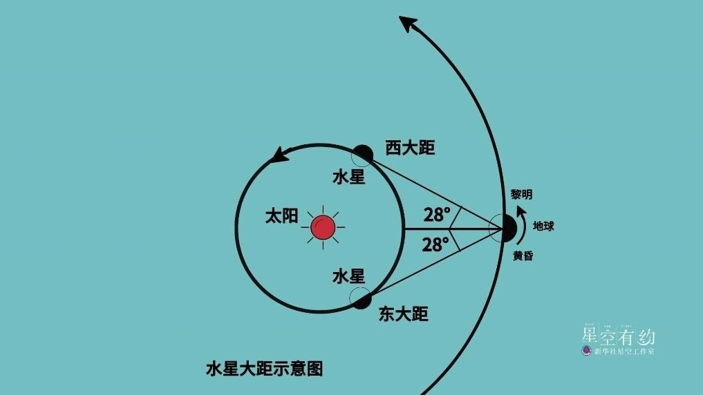 中國天文學會會員、天津市天文學會理事楊婧表示,想一睹水星“真容”,要等到它與太陽的角距離達到最大時,也就是從地球上看水星距離太陽最遠的位置。如果水星出現(xiàn)在太陽東邊,稱為東大距,此時水星在黃昏時的西邊低空出現(xiàn);如果水星出現(xiàn)在太陽西邊,稱為西大距,此時水星在黎明時的東方低空出現(xiàn)。每年通常會有6至7次水星大距,其中包括東大距和西大距。