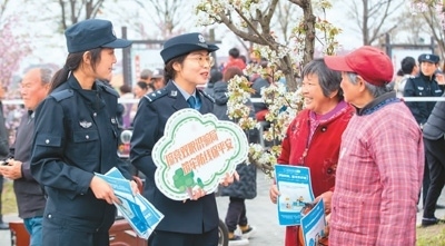 浙江省湖州市吳興區(qū)愛(ài)山街道警務(wù)人員向群眾介紹網(wǎng)絡(luò)反詐知識(shí)。新華社記者 翁忻旸攝