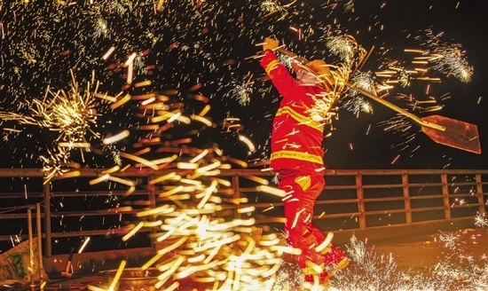 漫天的鐵花帶著炙熱,隊(duì)員說,一開始也會(huì)緊張害怕,但現(xiàn)在已習(xí)以為常。